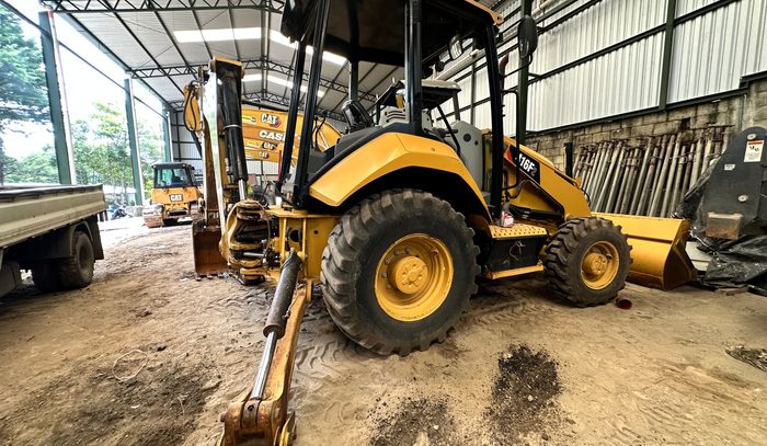 Retroexcavadora con brazo extendible para movimiento de tierra. Marca John Deere, CAT y CASE